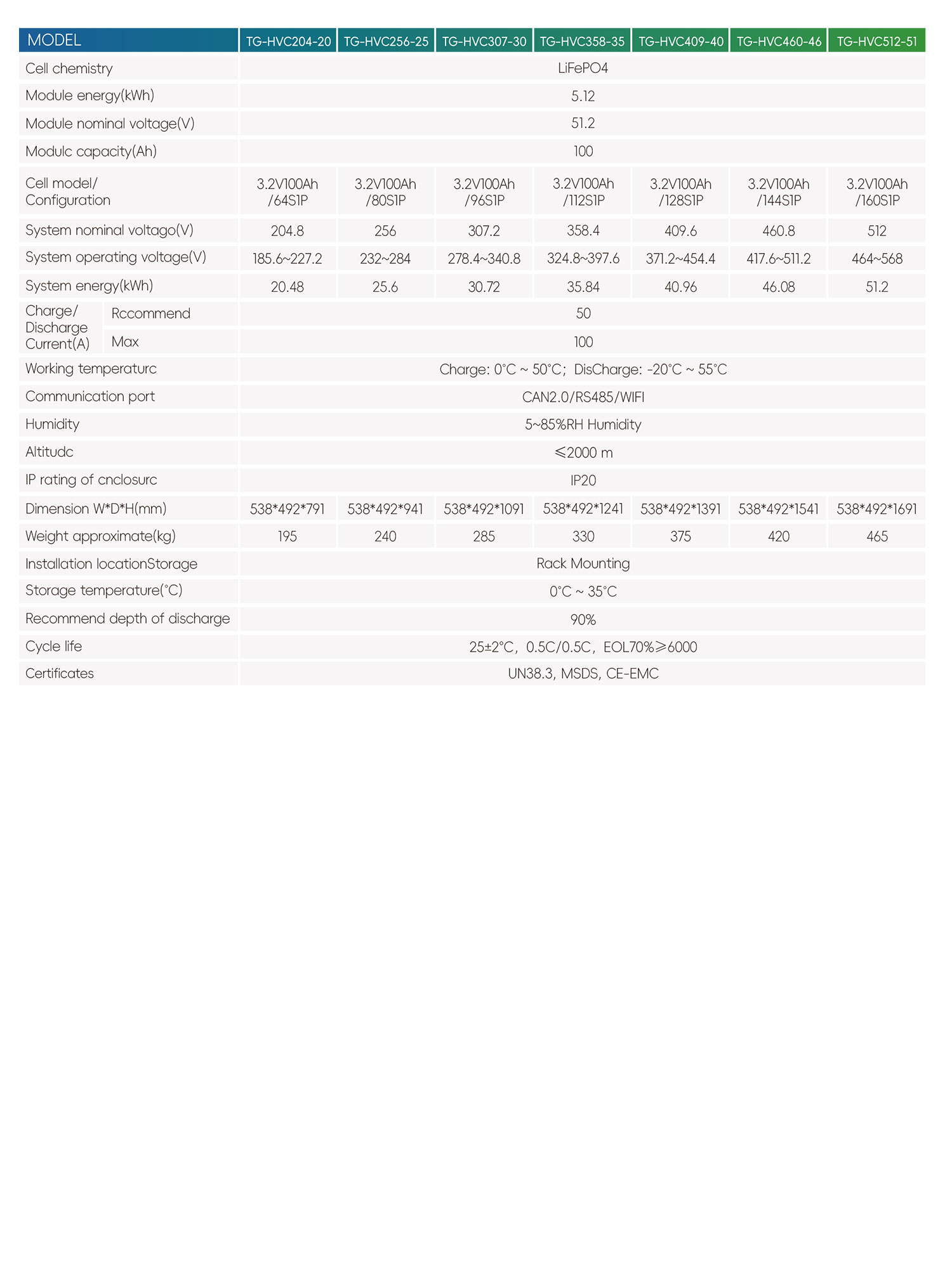 Commercial and Industrial Energy Storage 5U High VoltageRack Battery